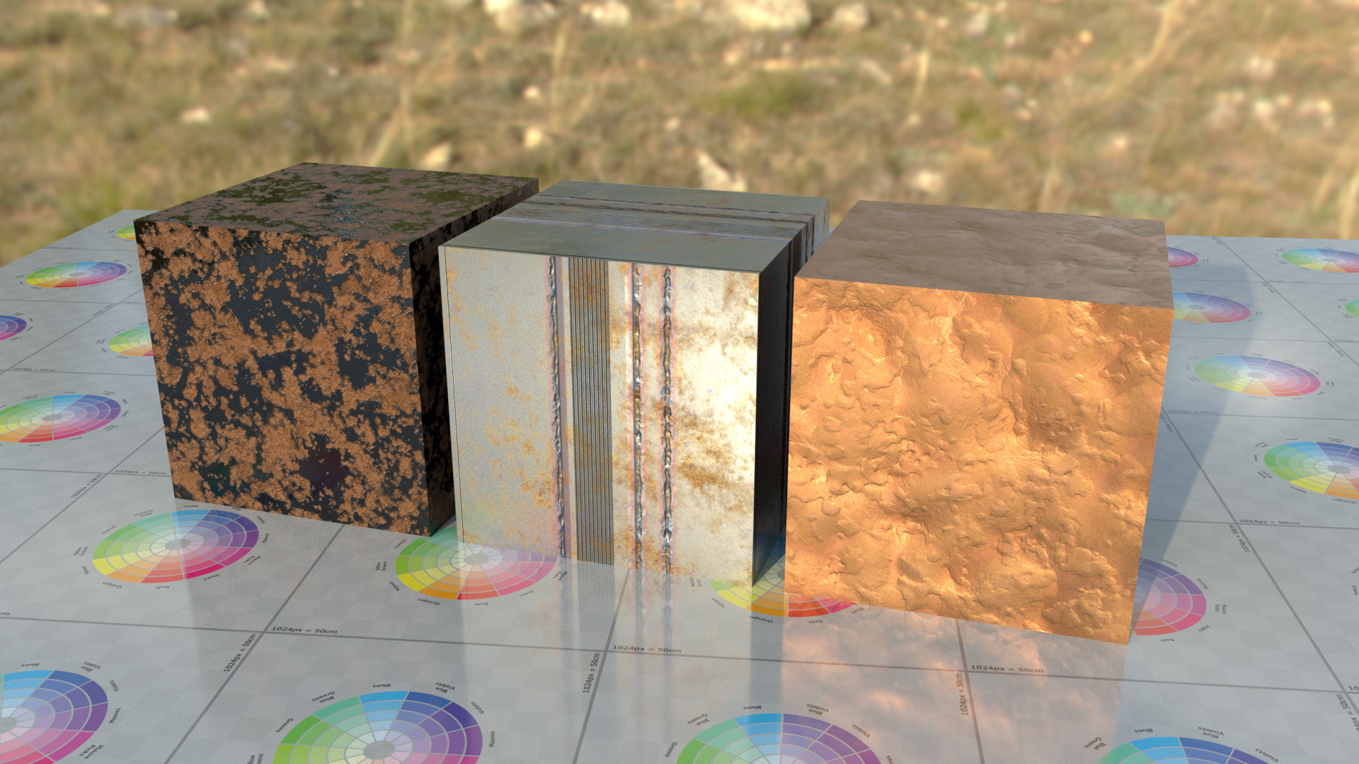 内容としては単純でアルベド、ラフネス、メタルネス、ノーマルそれぞれのテクスチャやPBRに関しての解説、そして事前に用意したテクスチャをオブジェクトに適用し、レンダリングするだけの内容です。