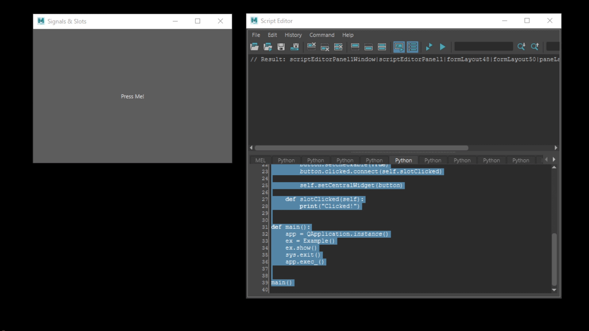 Maya PySide2 / PySide チュートリアルのこのパートではSignals & Slotsを扱いました