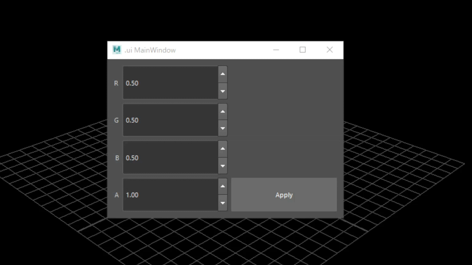 つまり、QDoubleSpinBoxの現在の値をApplyを押すたびにsetVertexColorでその値が反映されるようにする必要があります