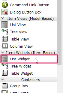 リスト表示させることができるWidgetが既にPySideでは用意されており、Item Widgets項目にあるList Widgetと名前の通りのWidgetです